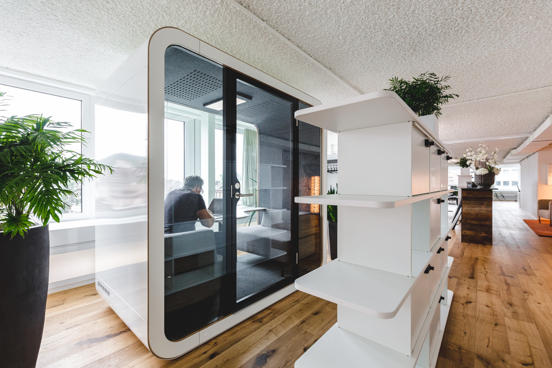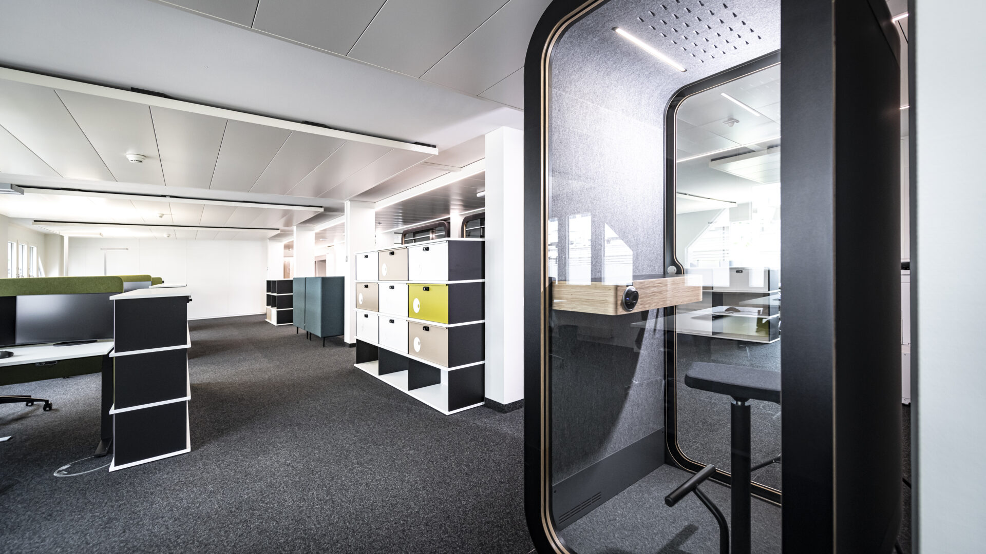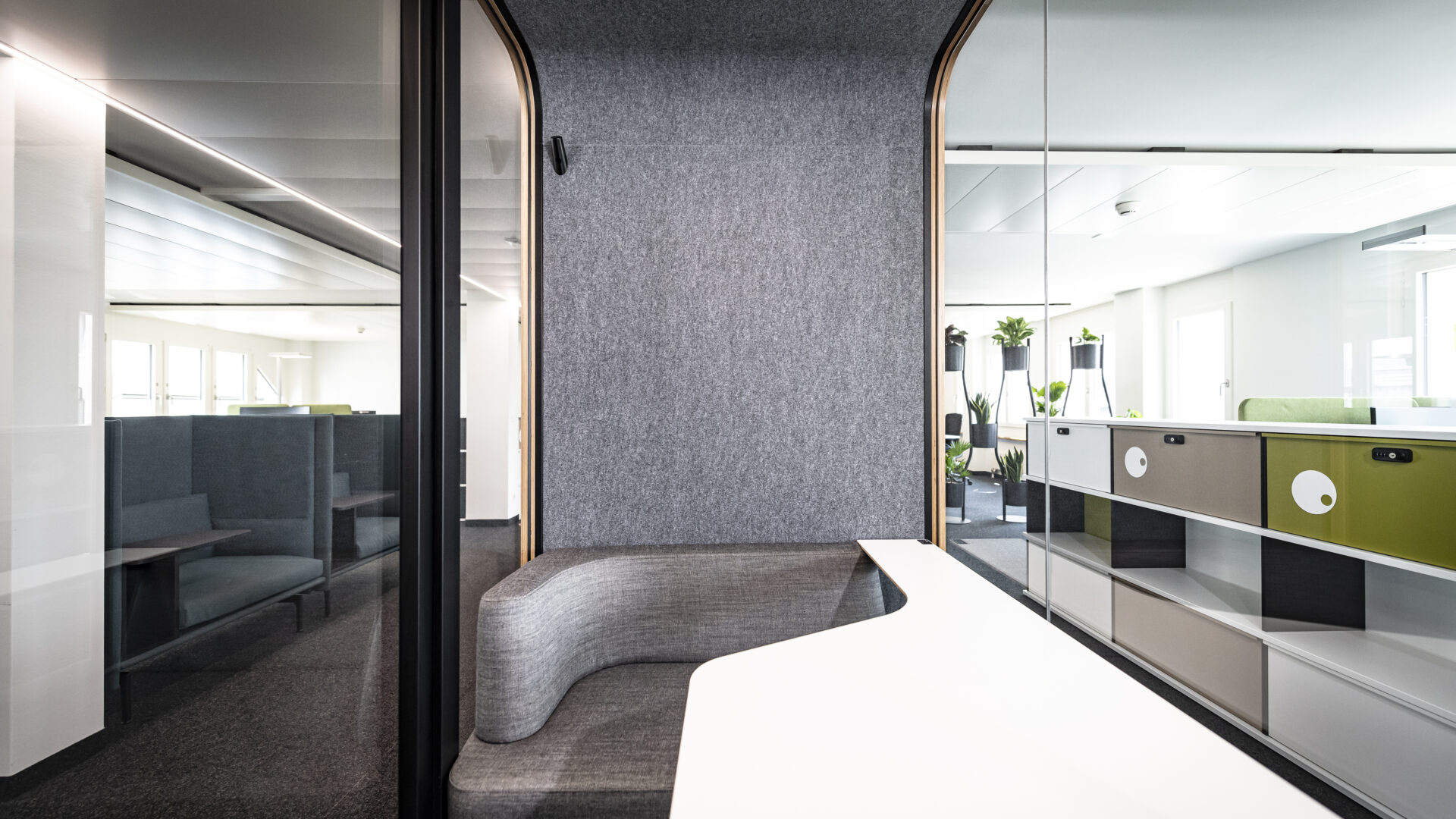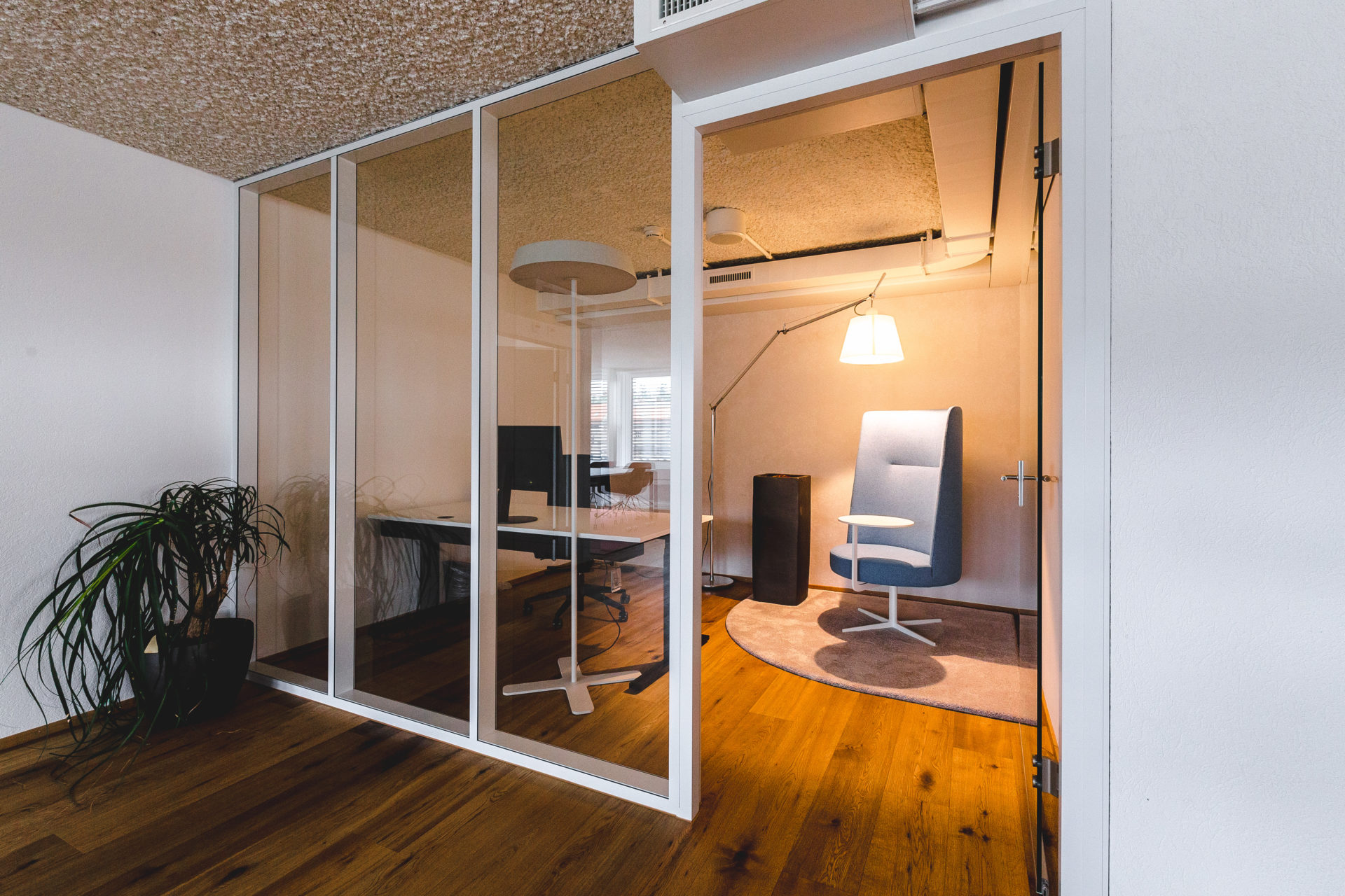 Unser Plan war es, die bestehenden Büroflächen optimaler zu nutzen resp. den neuen Wirklichkeiten wie vermehrter Projektarbeit, Bedarf nach Rückzugsmöglichkeiten, Homeoffice etc. anzupassen. Nebst den funktionalen Vorteilen der neuen Lösung fühlt sich zudem auch das Auge und das Ohr sehr wohl in den neuen Büros.