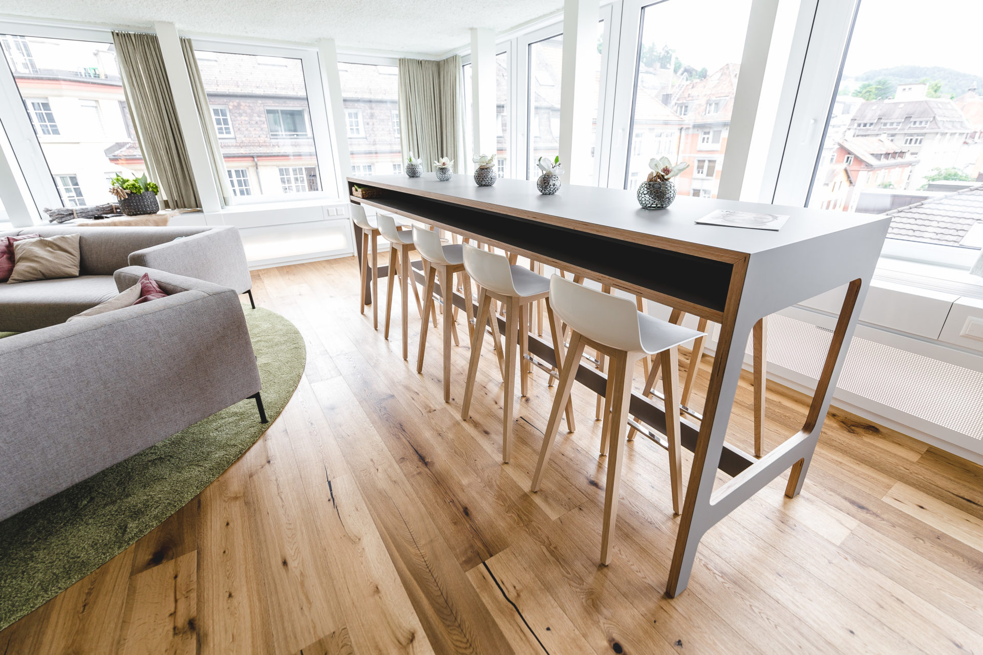 In der Startup Phase haben wir uns aus Kostengründen für eine günstige Büromöbel Linie aus dem Retail entschieden. Die Qualitätsansprüche wurden aber überhaupt nicht erfüllt und das Material musste nach kurzer Zeit ersetzt werden. Aus diesem Grund haben wir uns nach qualitativ sehr hochstehende, nachhaltige, lokale Produkte umgeschaut.