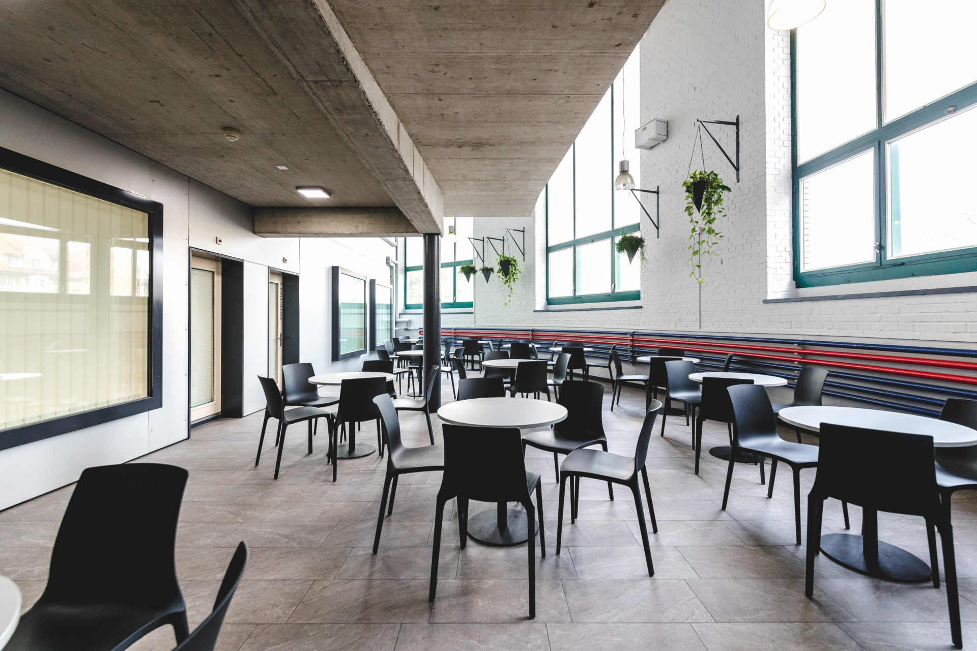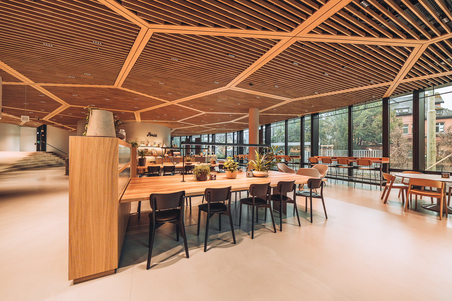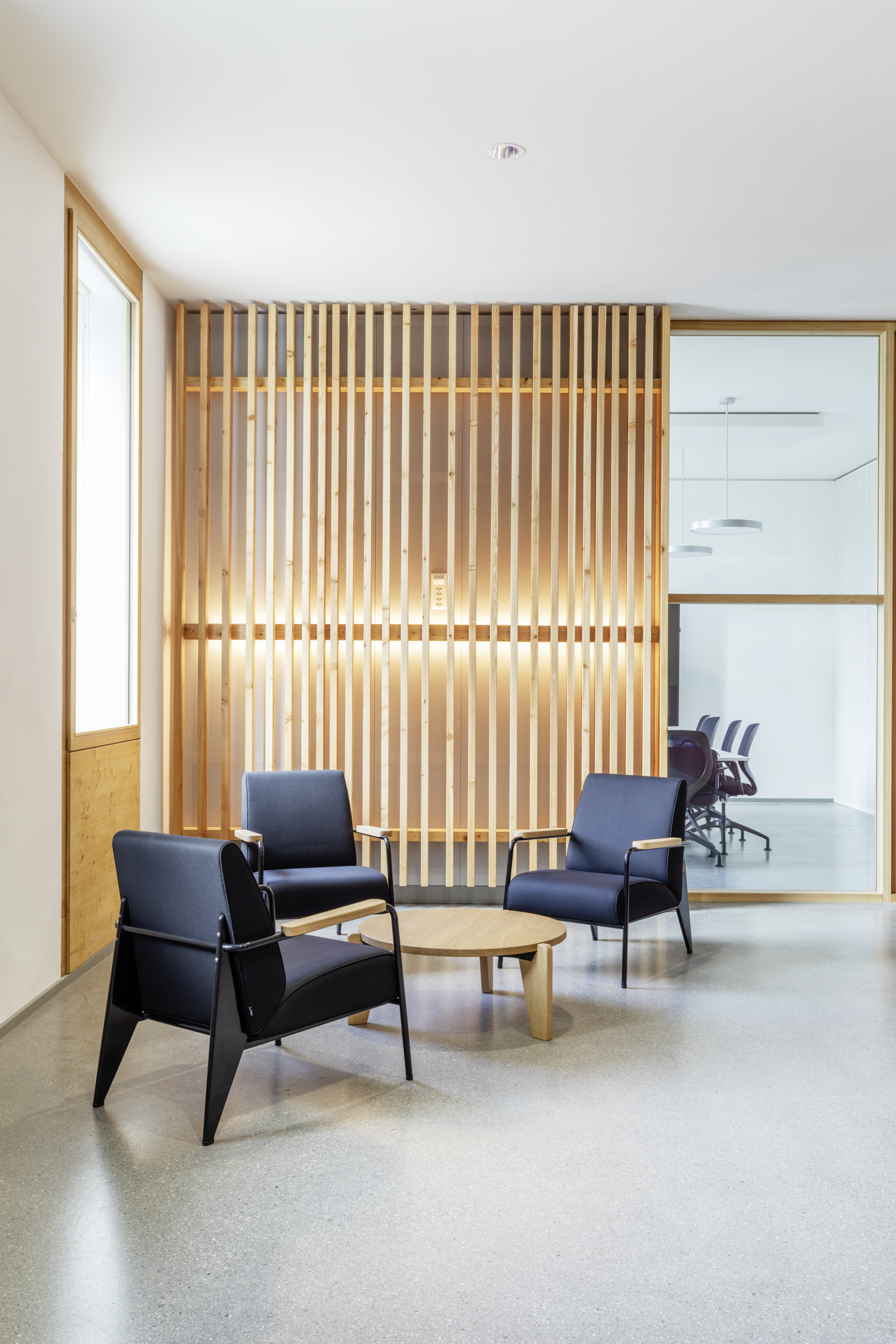 Die offene Gebäudestruktur und das angewendete Ausstattungskonzept fördert die Kommunikation zwischen den Mitarbeitenden.