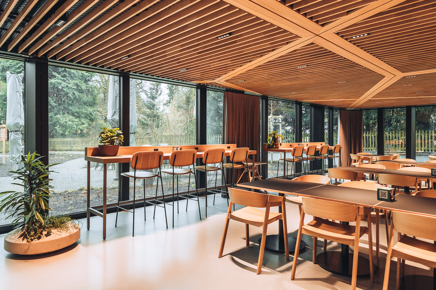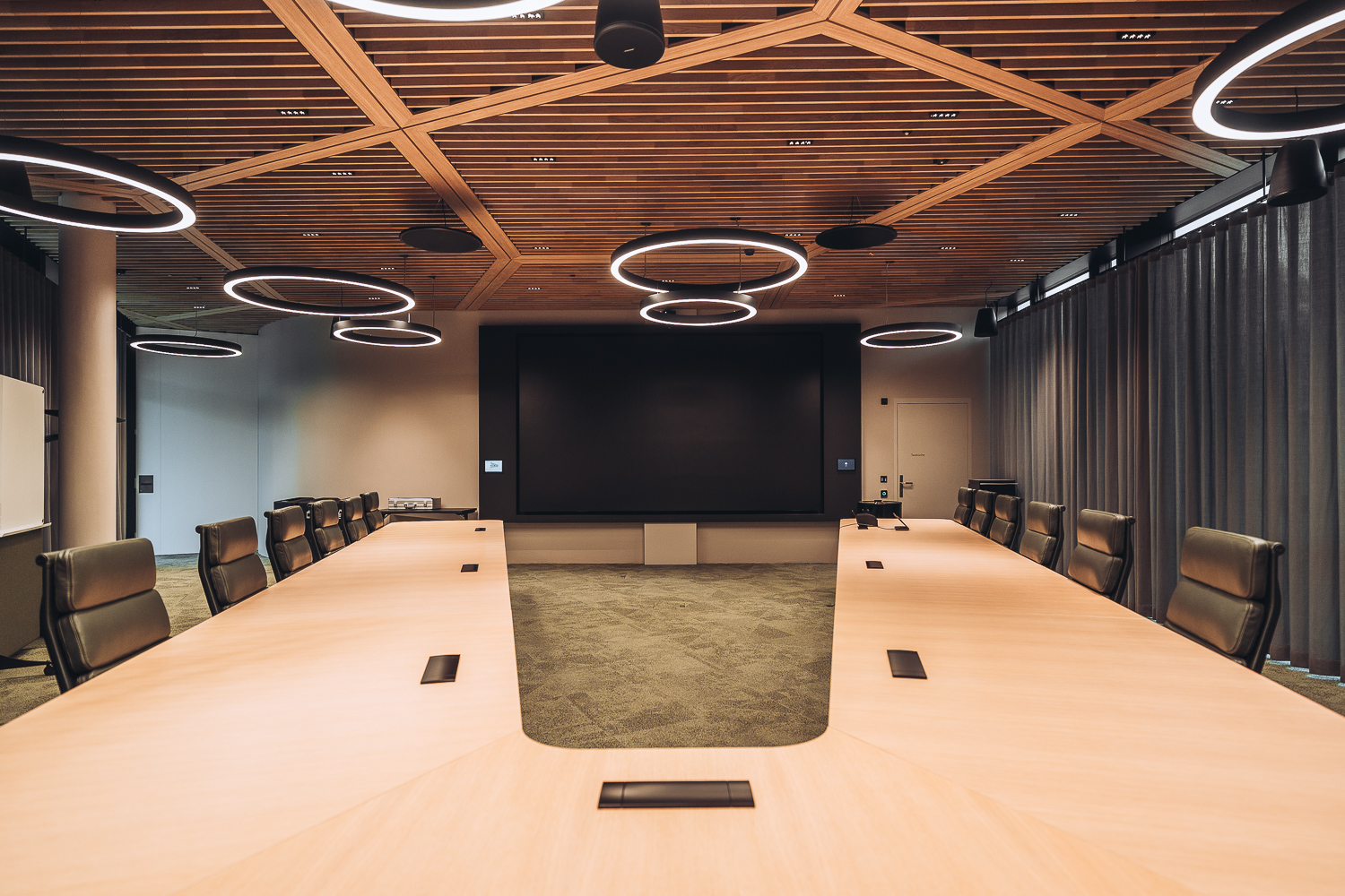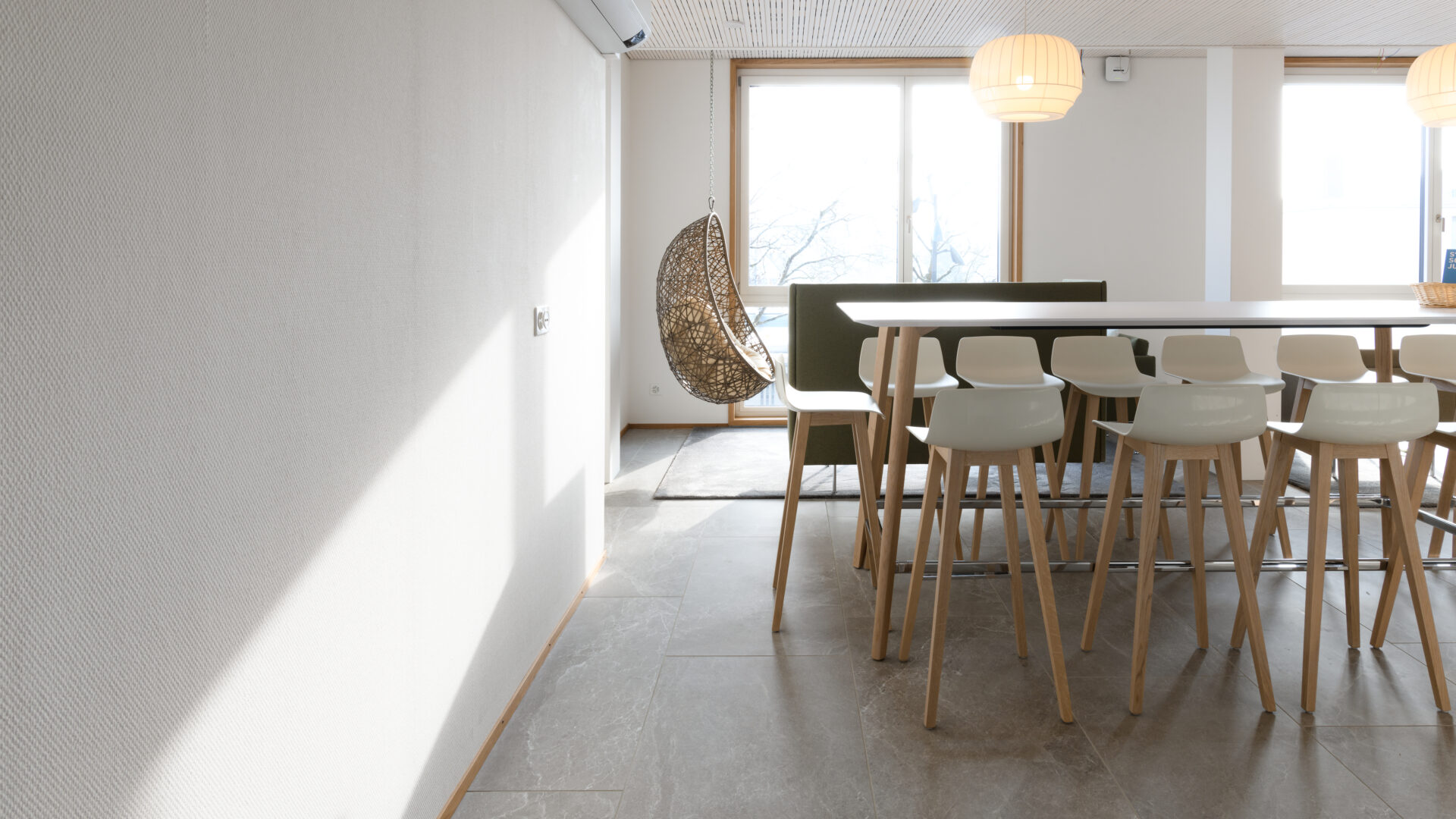 Das Einrichtungskonzept des Hauptsitzes basiert auf der Idee von ruhigem und zeitlosen Design mit echten Materialien.